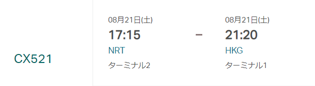 ・日本から香港への直行便は、8/20現在東京と大阪のみ