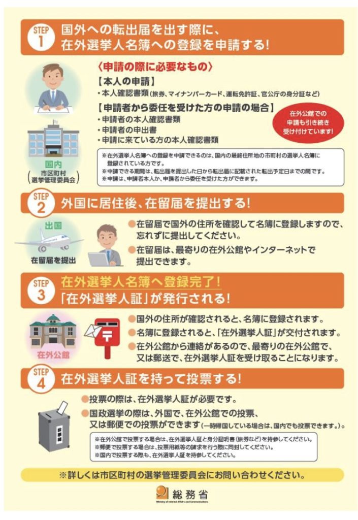 在外選挙制度について、詳しくは外務省のHPをご確認ください。