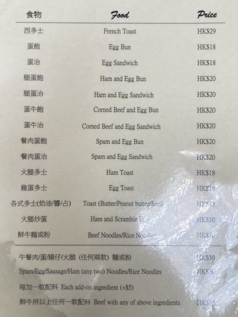 本日は、香港の茶餐廳