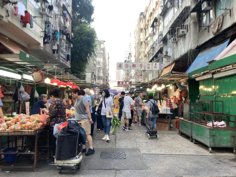 たくさんの人で賑わう街市